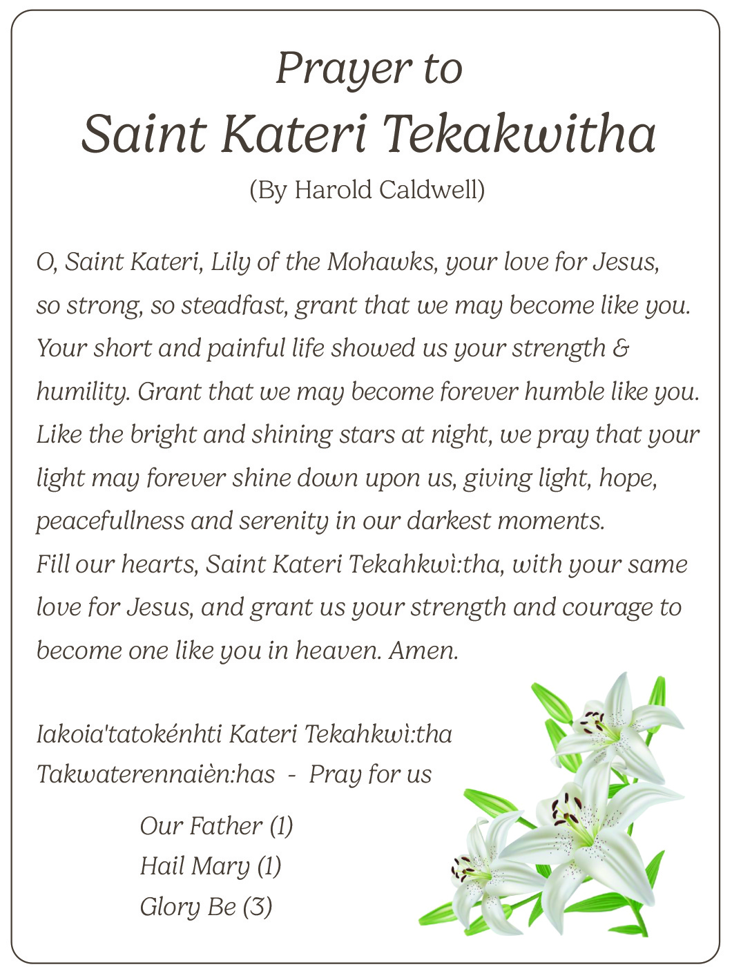 St. Kateri’s Feast Day: Sunday, April 19, at 10:45 AM